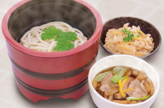 釜揚げ肉汁うどんと筍ご飯/1760円